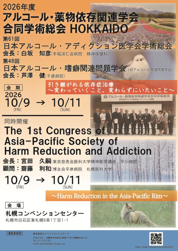 日本アルコール関連問題学会(芦澤健会長)、国際学会と3学会合同開催を予定している。